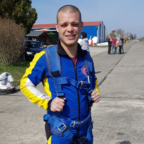 Azóta hívjuk így, amióta kiugrott egy repülőgépből ejtőernyő nélkül. Ekkor döntöttünk úgy, hogy ennek a férfiúnak itt a helye. Egyébként van egy gyönyörű kiskutyája és egy szeleburdi menyasszonnya.